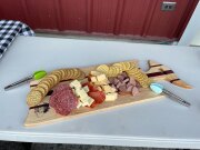 This Walnut Charcuterie Board with Cherry accents can be made in sizes of aproximately 30"x 11" or 24"x 9". Your custom board can be ready in 7-10 days. The larger board is priced at $275 and the smaller board is priced at $250. Each board is finished in a food grade oil and wax finish, and comes with a tin of conditioner to continue to protect your board for years to come. Custom laser engraving can be added to your board for an additional fee.