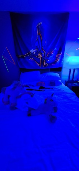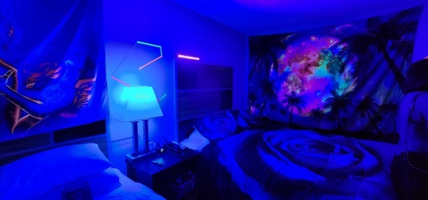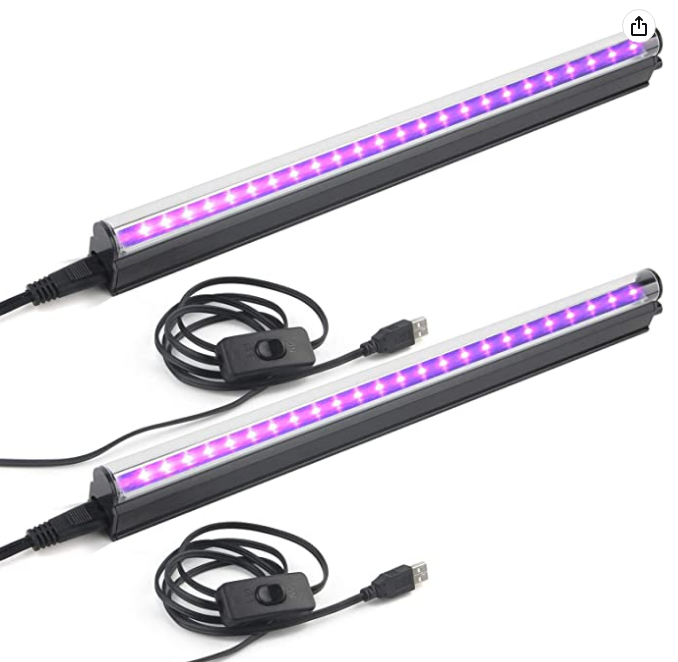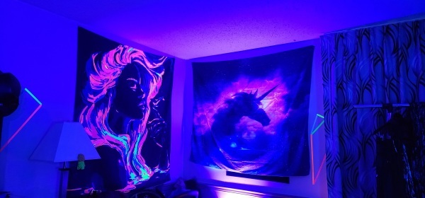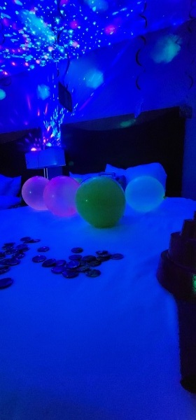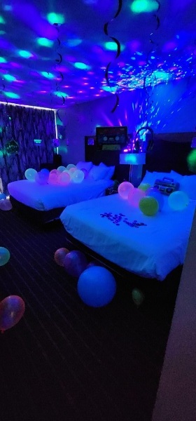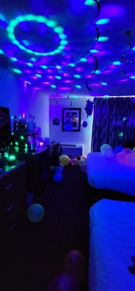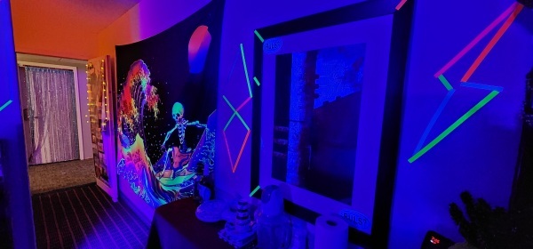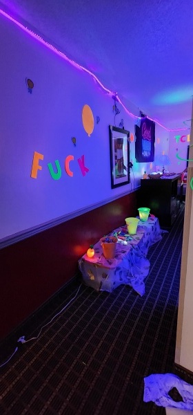 Lighting: Blacklights, string lights, LED candles, color bulbs, small dance/laser lights.